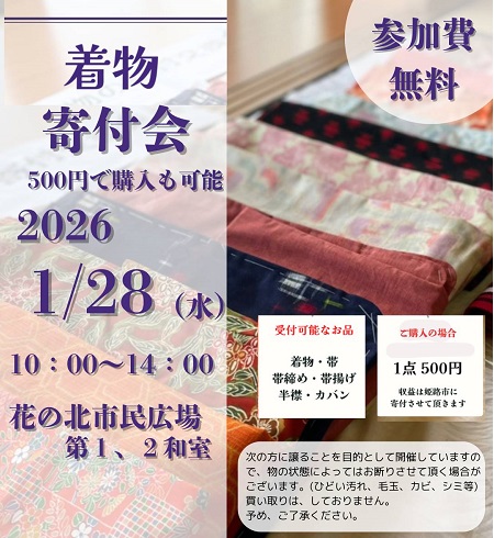 必要な方へ届けるイベント「着物の寄付交換会」を"姫路お片付けワークス"主催で開催します。