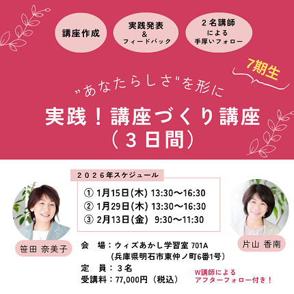 「"あなたらしさ"を形に~実践!講座づくり講座(3日間)7期生」≪明石≫