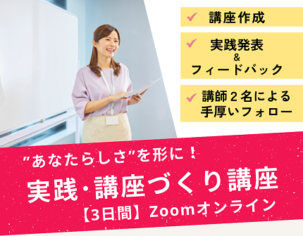 「"あなたらしさ"を形に~実践!講座づくり講座(3日間)7期生」≪Zoomオンライン≫